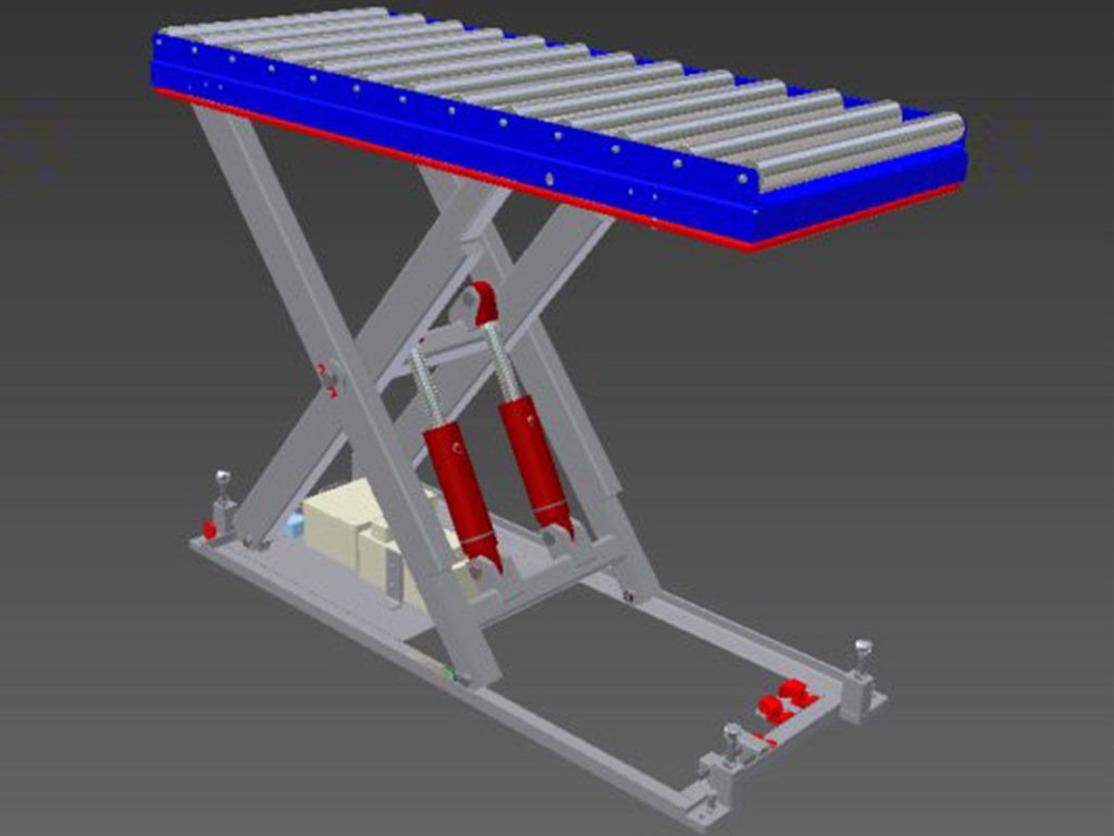 The lift can be equipped with roller conveyors, a rotating table, barriers, flaps, and other mechanisms, offered in a wide range of table dimensions and lifting heights depending on the client's needs..