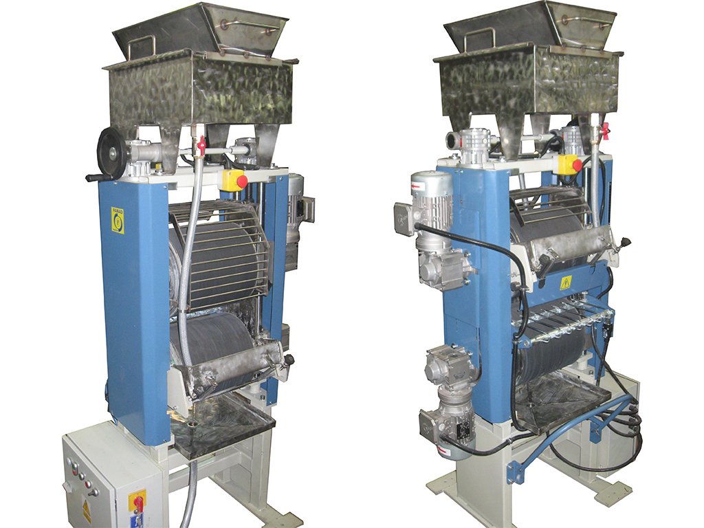 In the right body of the device is located the electrical box, together with the control panel. The device is also equipped with a knee safety switch, placed in the form of an arm, running along the device from the inlet side. The device can work individually or in processing/machining line.