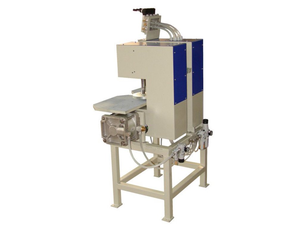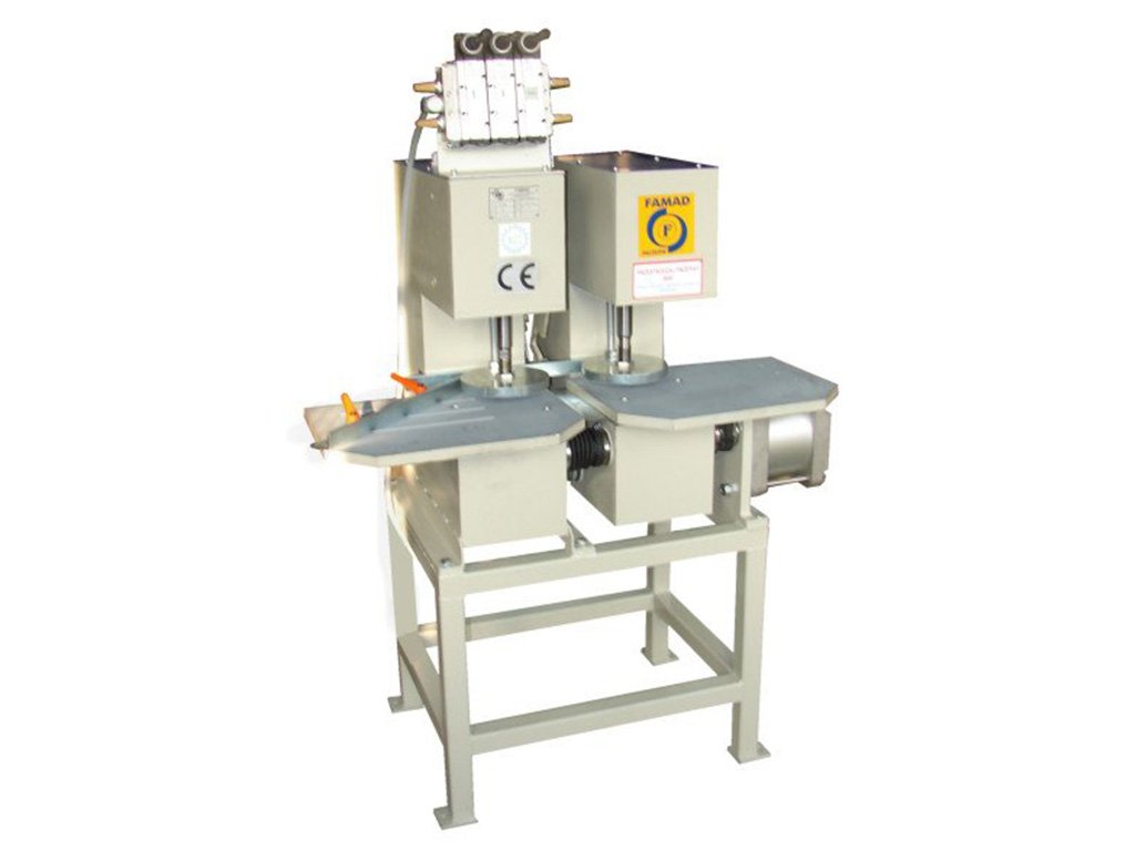 The DPŁ arc pneumatic press is designed for connecting diagonally milled ends of wooden elements into one whole, being an end product for the making of arched elements. The press consists of a table made from closed sections and two bodies (one is movable). A pneumatic actuator for the clamping of wooden elements is attached to each body.