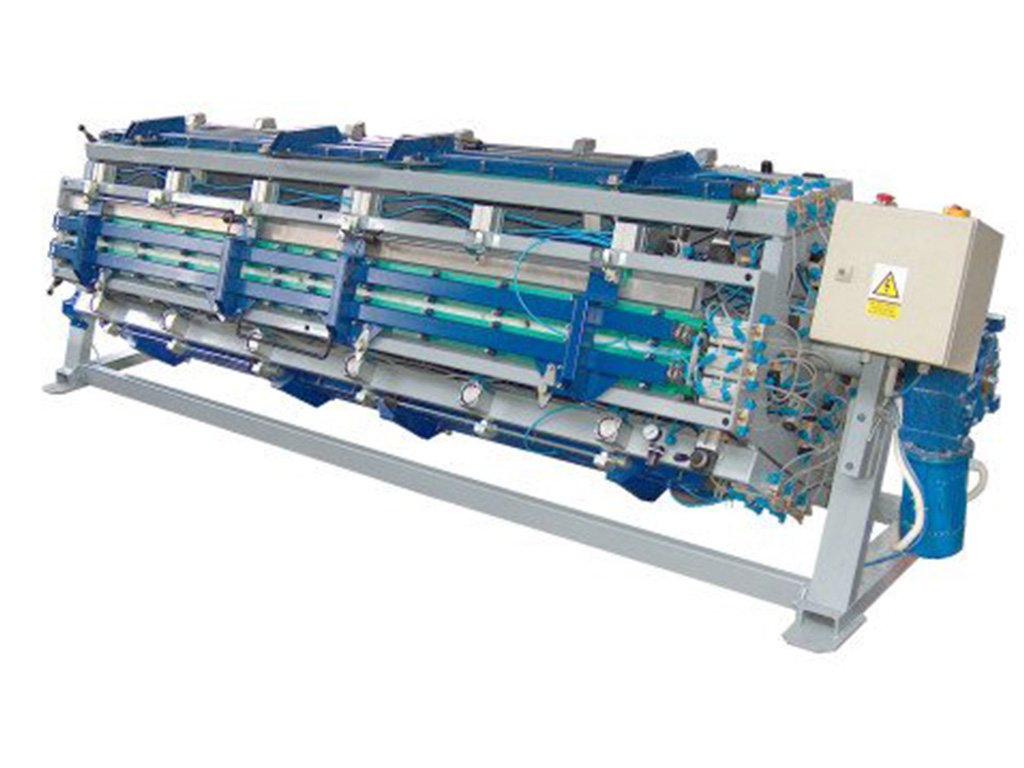 The OPPK pneumatic shelf press is designed for the gluing of the external layer of lamellas into a floor panel.