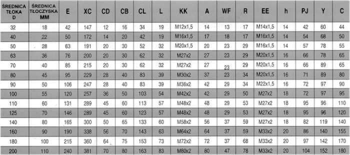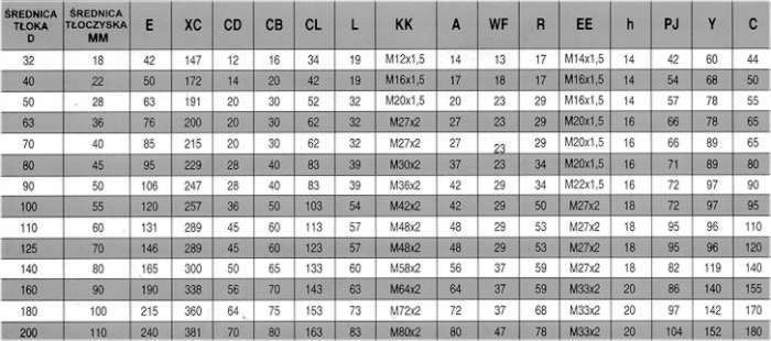 Uszczelnienia i inne elementy typu łożyska są wykazane w Karcie Gwarancyjnej poszczególnych typów cylindrów.