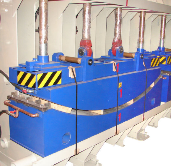 Hydrauliczny ścisk HSKG-Ł służy do klejenia łuków drewnianych na grubość używanych przeważnie przy produkcji elementów tzw. programu ogrodowego. Klejenie odbywa się pod dużym naciskiem siłowników hydraulicznych. Stos elementów klejonych formuje się poprzez ściskanie hydrauliczne między belkami siłowników pionowych i kopytami. Najczęściej stosowane wykonanie to wersja z grzanymi kopytami za pomocą gorącej wody . Klejenie łuków drewnianych z grubości pozwala na kształtowanie dowolnego profilu, zmniejsza koszty obróbki, zmniejsza ilość odpadów drewna.